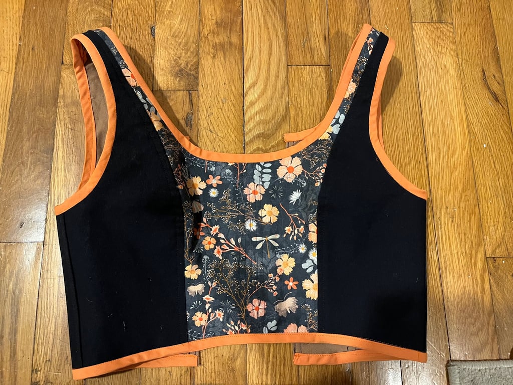 This top was made based on the Noble block, and later spun off into its own design, Tristan. The wearer reports that their body is asymmetric, which you can see in the back view. They were very happy with this simple variation of Noble.