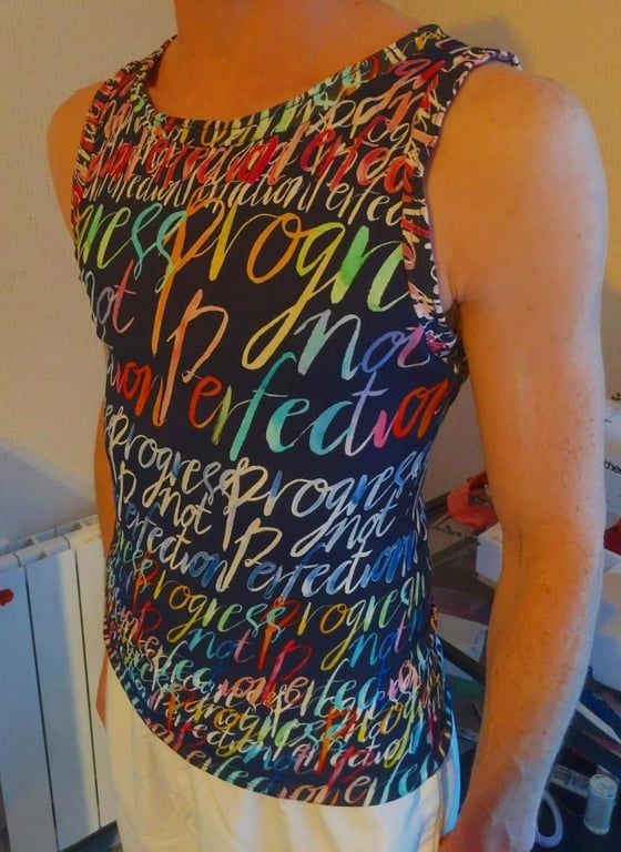 This attractive Aaron A-shirt was made by fearless sewist Gaëlle, who basically started sewing 10 days ago! It was done without a serger.