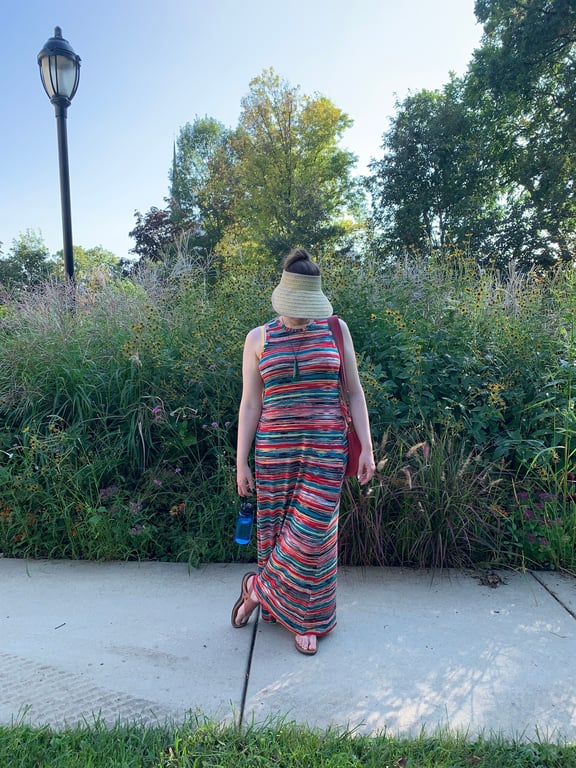 You get to just follow the assembly instructions for Aaron, except with super long side seams. Before you hem your dress, try it on! I hemmed mine around ankle length, but experiment with hem depth. This is especially important if your fabric is stretchy or drapey, as it may stretch longer than you expect.