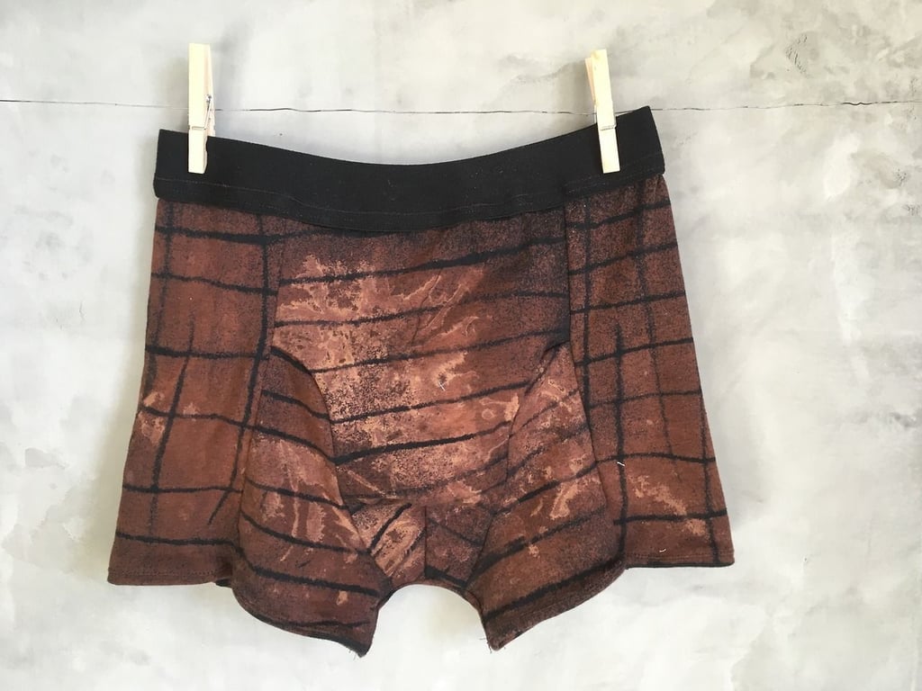 These are made of black tshirt fabric she bleach dyed myself, using desert plants for the design.