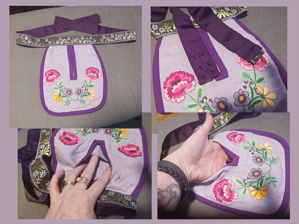 But Xhex didn't stop there - rather than leaving the outside plain, she embroidered it with these absolutely beautiful flowers and incorporated an embellished waistband with 3 different size options so it can be adjusted based on what else she's wearing. While pockets may have traditionally been worn under other clothes, this one is so beautiful, we'd absolutely want to show it off!