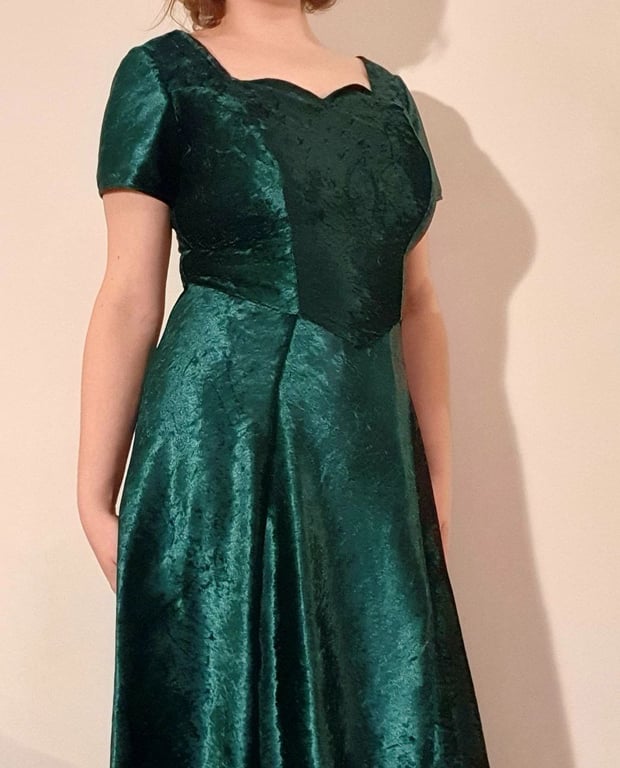 My noble-based evening gown in green velvet.