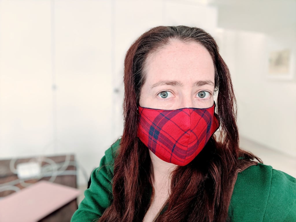 At work, she wears a medical-grade face mask. This Florence face mask is for her commute to work on public transport.