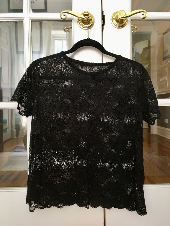 Another version of the Teagan T-shirt by Karen. This time made with black lace fabric and with the addition of a scalloped hem.