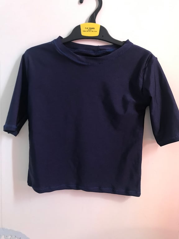 FreeSewing user comixminx made this great Teagan tee as part of a swimming costume for a non-binary kid. The navy version in the header image is the final version, but since you clicked into the post, here's a bonus first draft in gray!